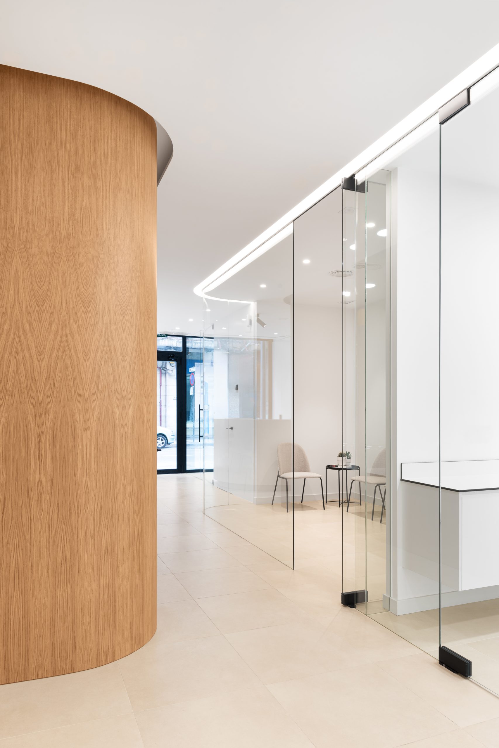 La reforma integral de esta clínica dental, ubicada en el Paseo Zorrilla de Valladolid, supuso un reto arquitectónico resuelto con un enfoque que combina funcionalidad, sostenibilidad y estética. El proyecto fue desarrollado en colaboración con el arquitecto Roberto Valle, cuya