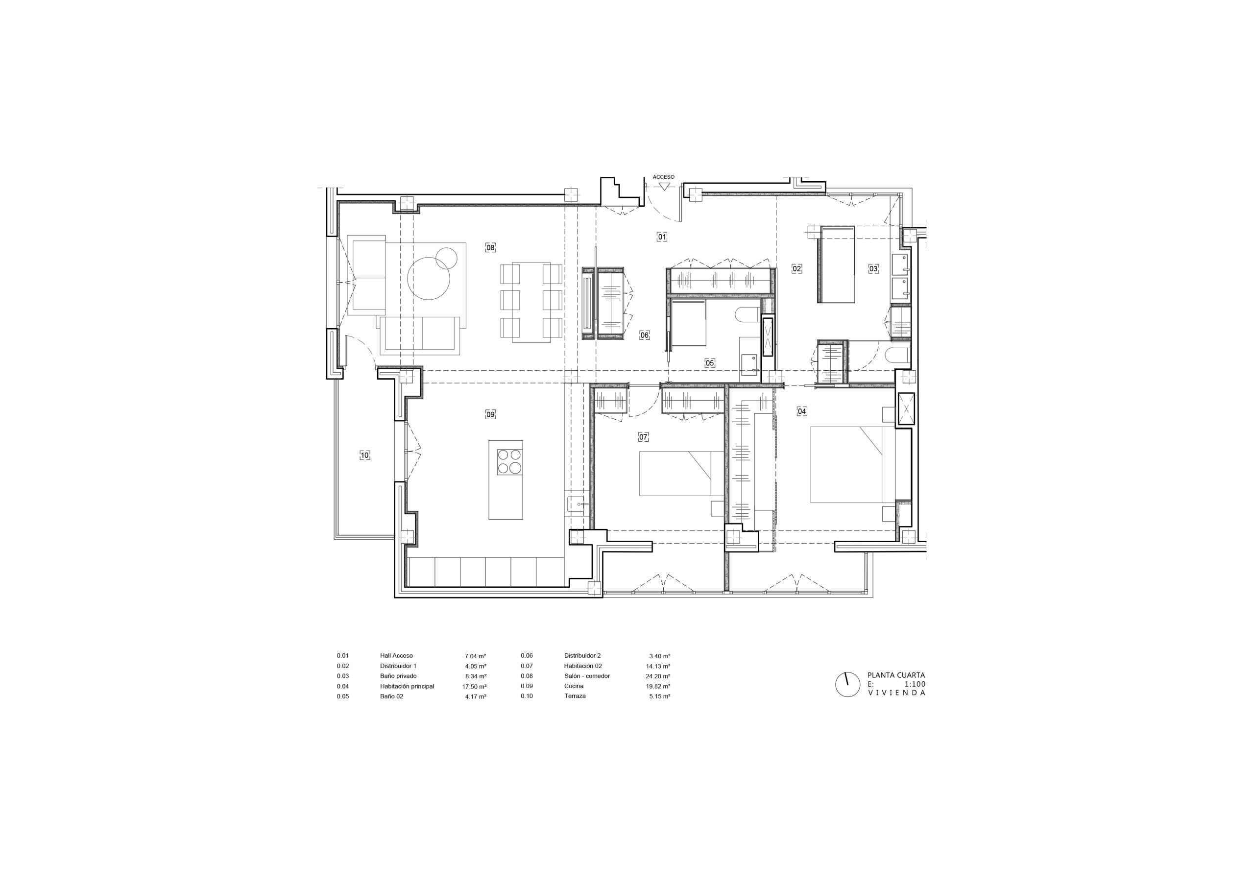 La intervención comenzó con una redistribución completa de los espacios, buscando mayor amplitud y fluidez en la vivienda. El salón, comedor y cocina se han planteado como zonas abiertas y conectadas, potenciando la luz natural y generando un ambiente más dinámico y versátil. De esta manera, la vivienda se adapta mejor a las necesidades actuales de quienes la disfrutan en su día a día.